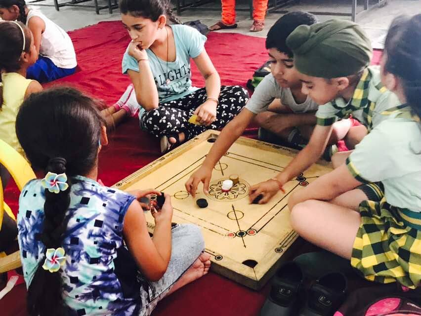Lets shake your mind and hit the goal. Kids enjoying Chess+carrom board workshop.
